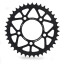 Sprocket is 7075 aluminum alloy and hard anodized in black color, pattern 5 holes M10 PCD 100mm ID 76mm, and fits Rotobox rear symmetric wheels perfectly.